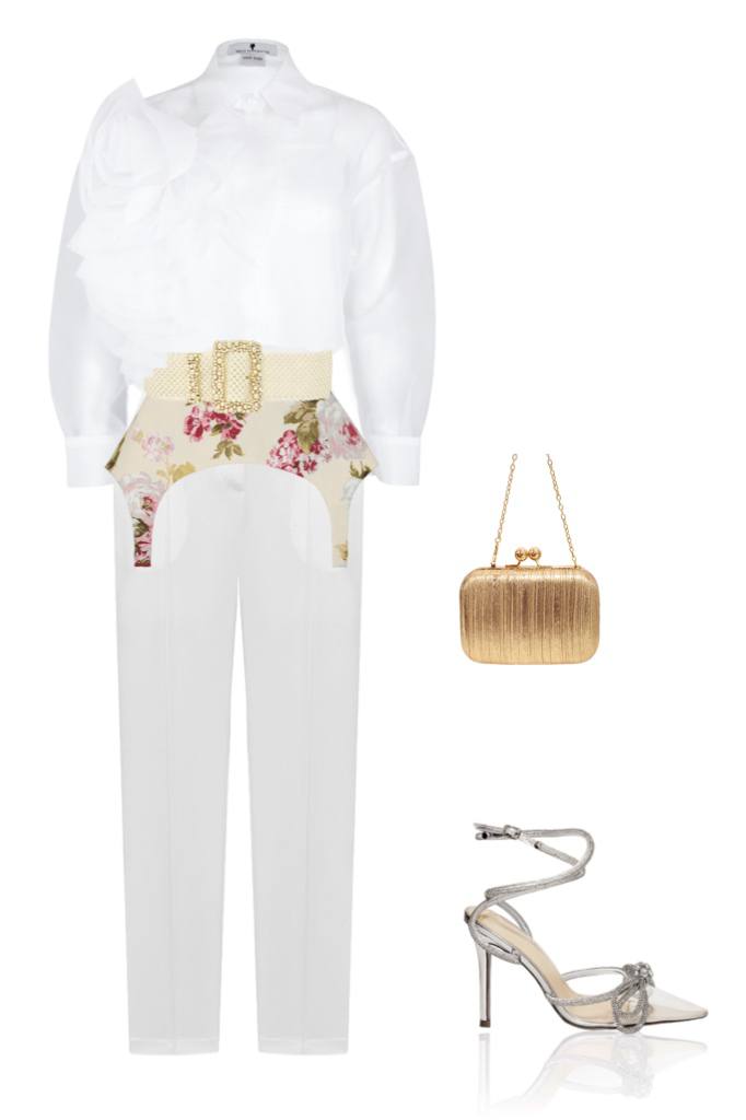 Пояс-корсет-баска "Пионы", нюдовый, цветочный принт