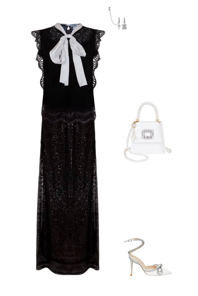 Юбка "Эрлайн" черная, черные пайетки (100 см)