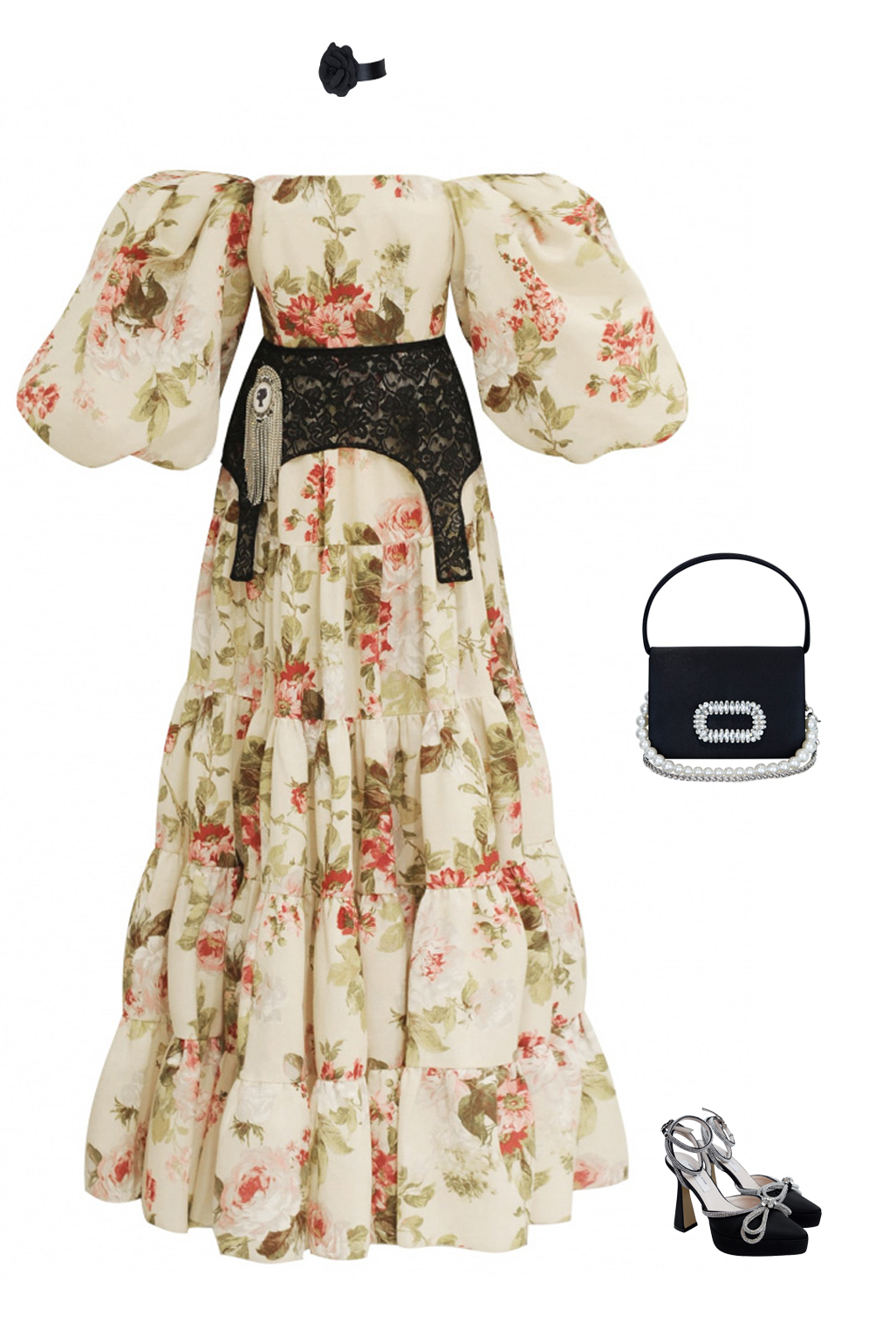 Брошь - чокер "Камелия" черная