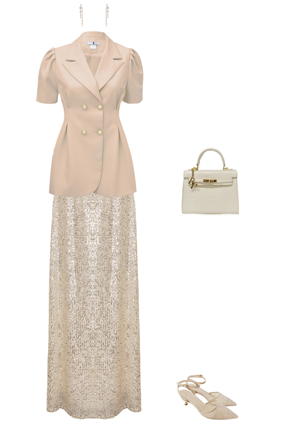 Юбка "Эрлайн" бежевая, серебристые пайетки (100 см)