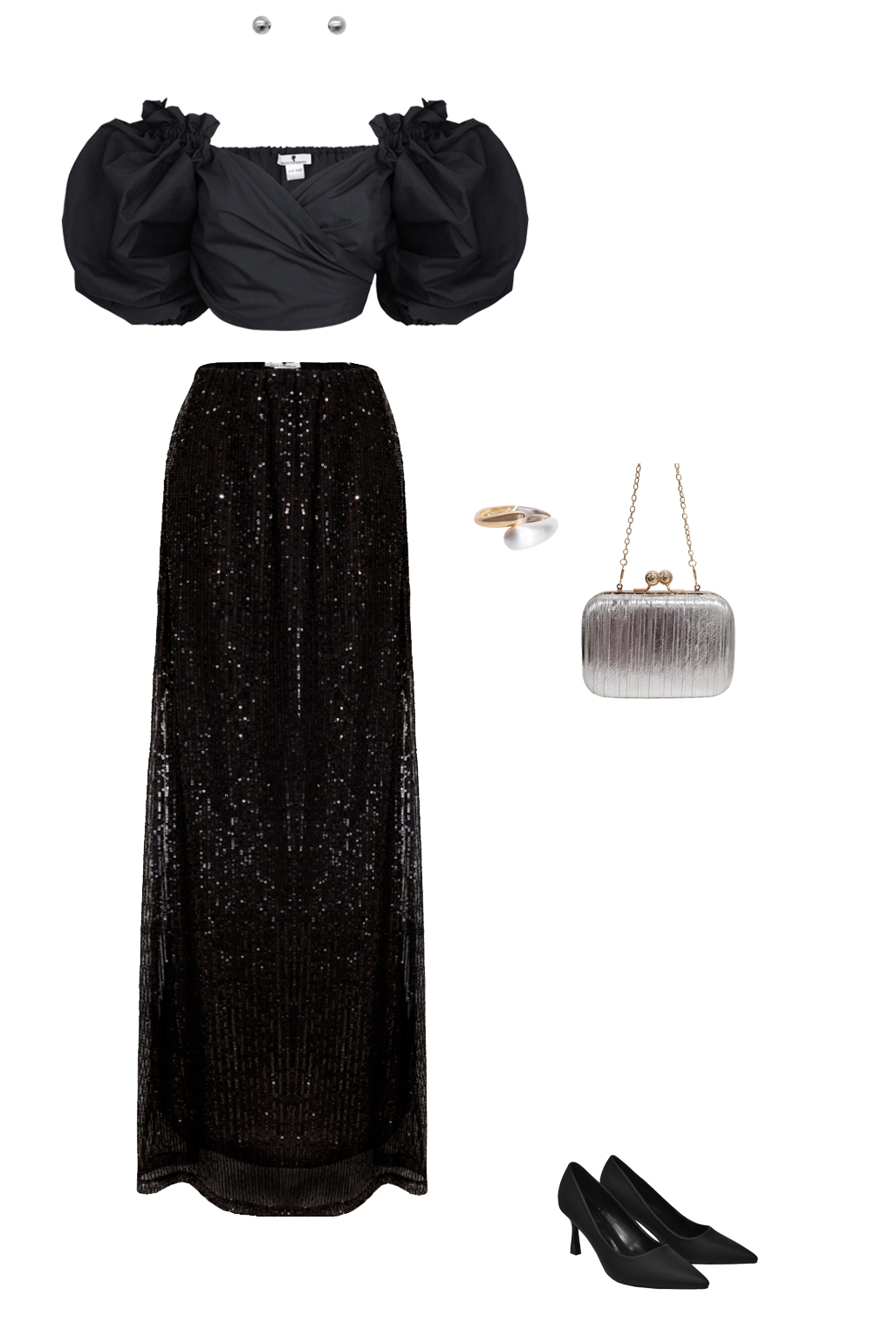 Юбка "Эрлайн" черная, черные пайетки (100 см)