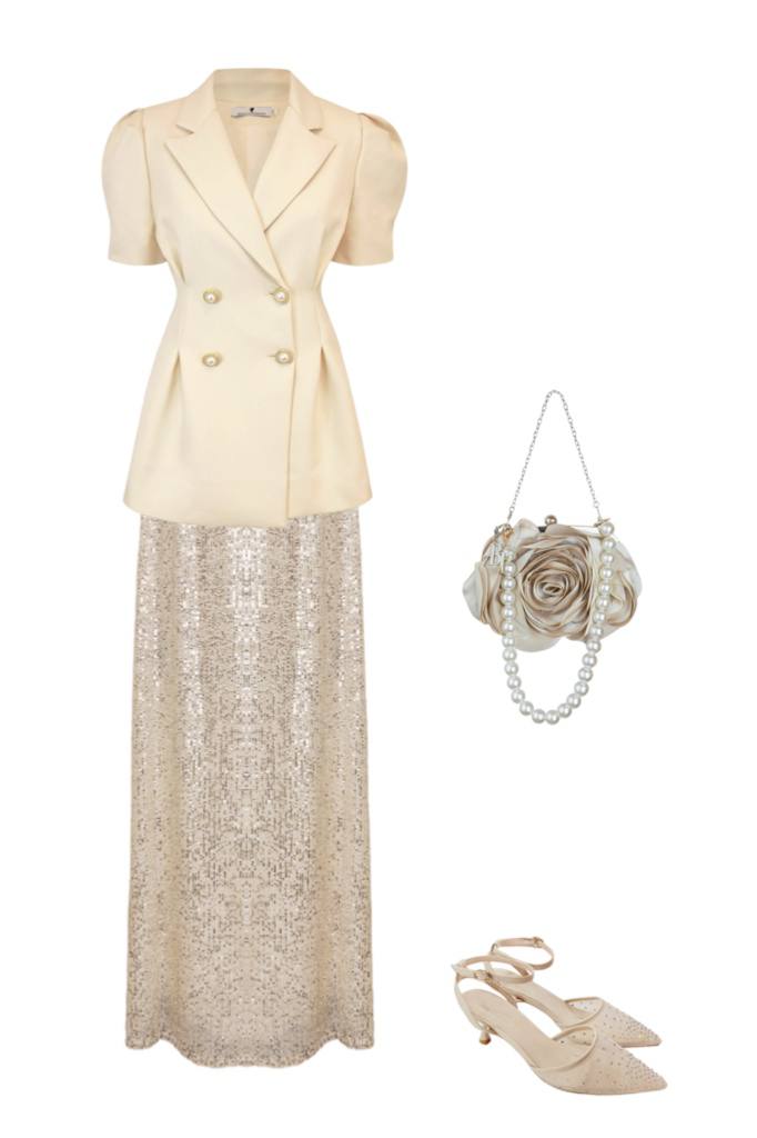 Юбка "Эрлайн" бежевая, серебристые пайетки (100 см)